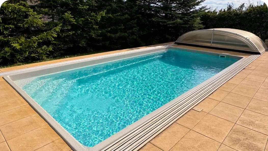 Soukromý bazén s pojízdným zakrytím, který je součástí rodinného domu